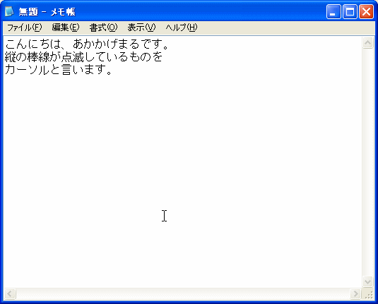 これもよく聞かれるのですが、文字を書くソフト(メモ帳やテキストエディタ等と言う)上で文字を書く用意ができている縦に点滅する棒線の事を言います。